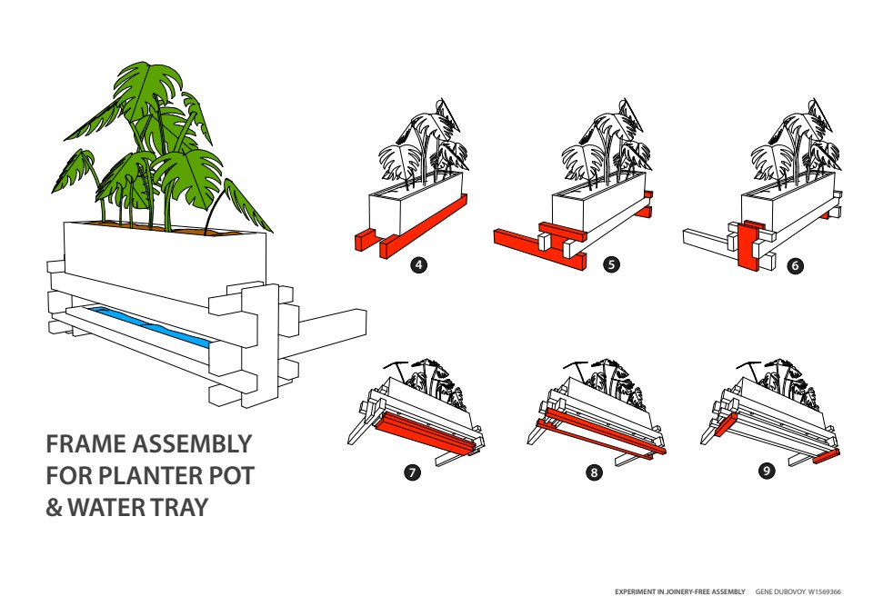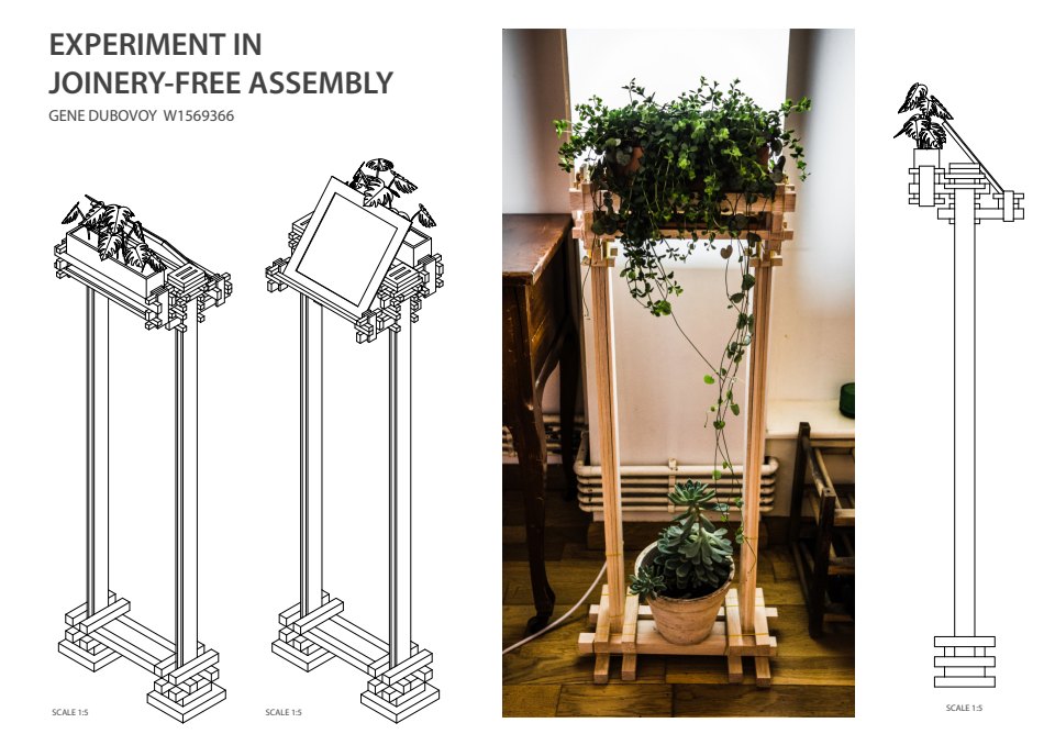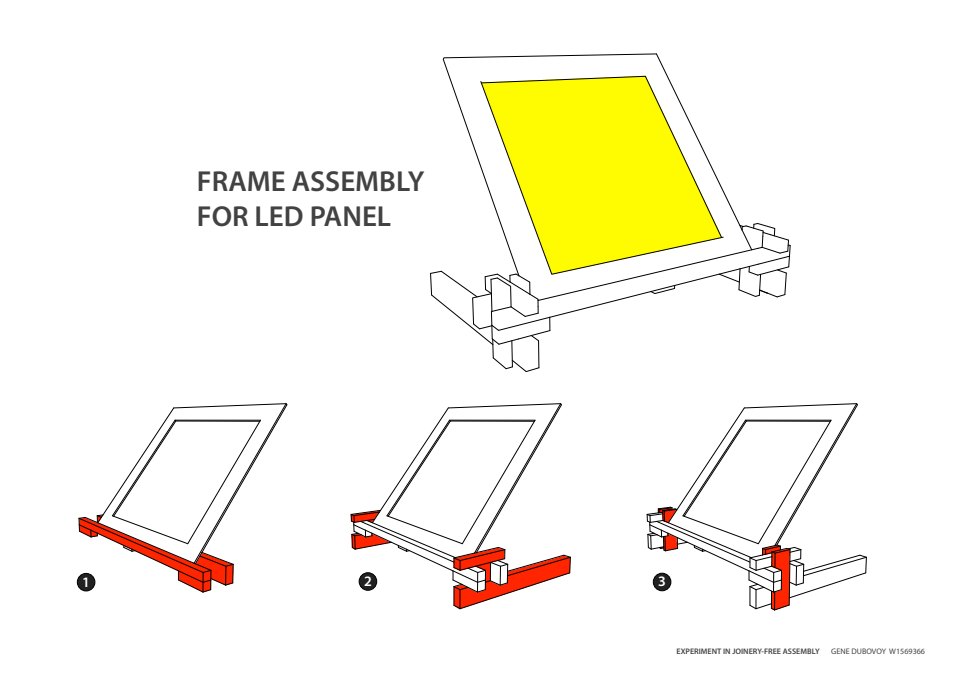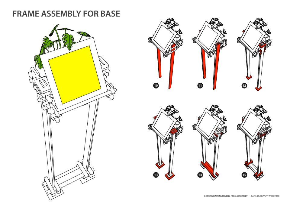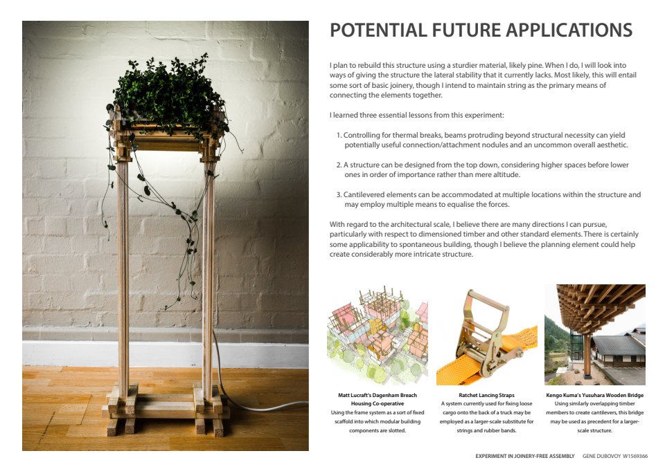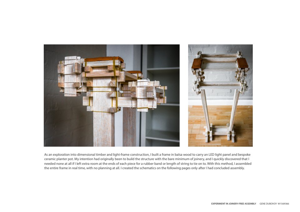 — Assembly sequence of experimental balsa wood floor lamp, held together only with string and rubber bands —